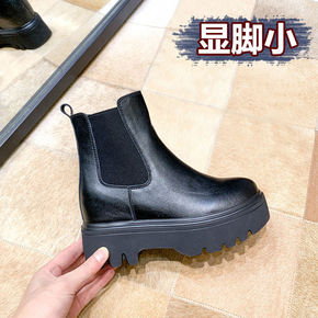真皮马丁靴切尔西女韩版2021春秋新款英伦爆款厚底...