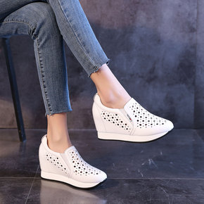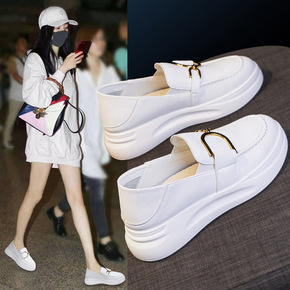 厚底内增高圆头低帮2021秋冬新款时尚透气真皮休闲...