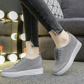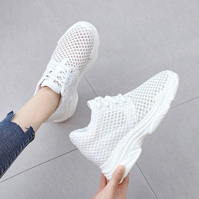 夏季网鞋内增高网纱透气厚底镂空老爹鞋小白鞋ins休...