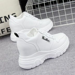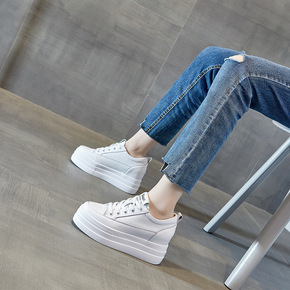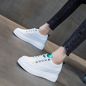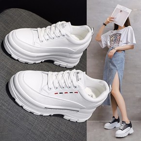牛皮厚底小白鞋女内增高2021秋季新品松糕底时尚休...