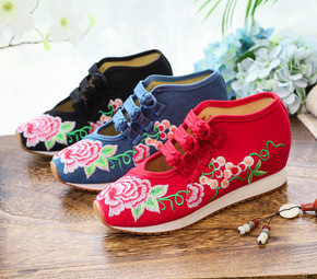 2020春夏新款厚底内增高单鞋女浅口刺绣小蜜蜂休闲...