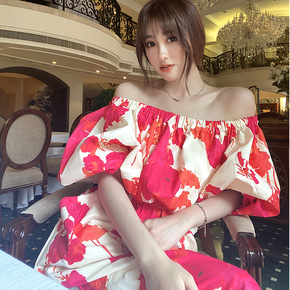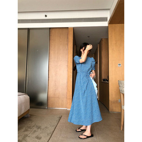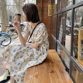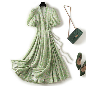 夏季新款泡泡袖碎花连衣裙女小清新甜美中长气质显瘦短...