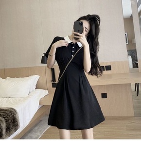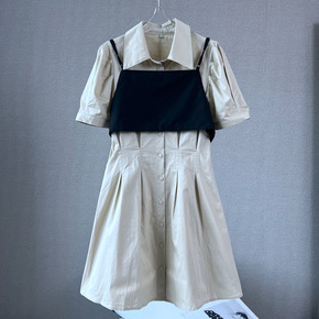 2022春夏季时尚POLO领单排扣连衣裙+绑带裹胸...