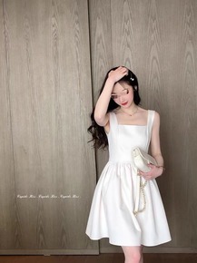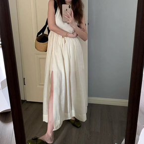 气质单件法式高开叉连衣裙修身吊带无袖a字裙搞定背心...