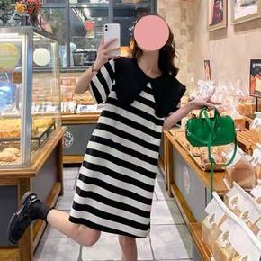 亚马逊独立站欧美条纹宽松大码长款大摆拖地裹胸连衣裙...
