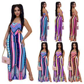 跨境欧美女装 独立站亚马逊爆款春夏休闲抹胸度假长裙...