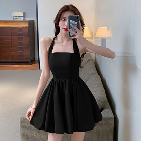 高级设计感吊带A字裙2022夏季新款挂脖露背收腰蓬...