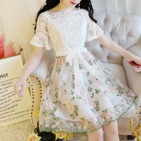 实拍实价 法式度假风复古刺绣抹胸高腰连衣裙...