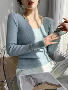 2021秋冬新款修身内搭打底长袖针织钉珠上衣洋气韩...