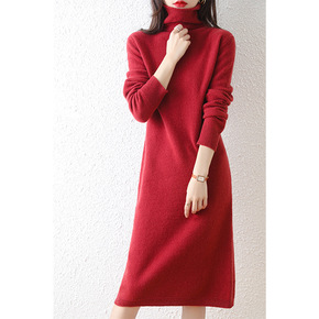 高领毛衣女秋冬外穿韩系慵懒风软糯红色针织内搭宽松加...