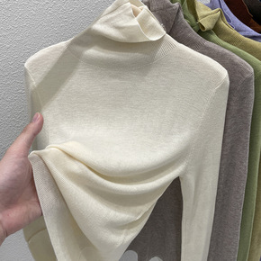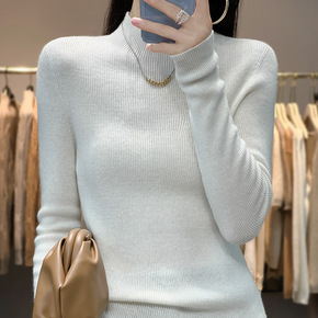 羊毛针织衫女秋冬半高领毛衣打底衫百搭洋气修身长袖内...
