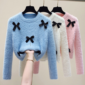 秋冬水貂绒毛衣女2022秋冬季新款长袖修身内搭半高...