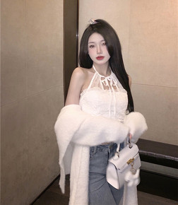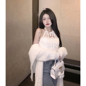 ~秋冬挂脖蕾丝小打底短款吊带背心女内搭...
