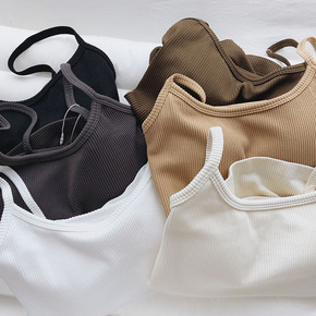 厚实秋冬内搭!带胸垫弹力短款打底无袖吊带上衣女修身...
