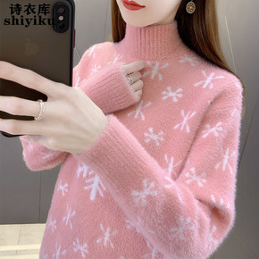 毛衣女2020新款秋冬宽松外穿半高领针织打底衫内搭...