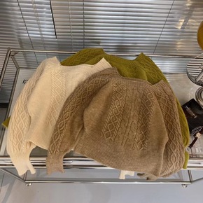 2022法式大方领秋冬毛衣女士麻花上衣温柔慵懒风针...