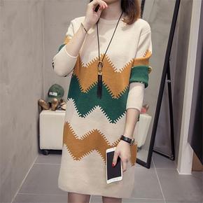 中长毛衣女士秋冬季2022年新款女装宽松时尚撞色内...