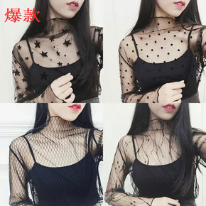 好柔软 仙气高领蕾丝网纱透明打底衫 女装2022新...