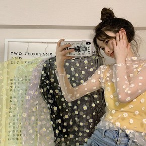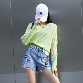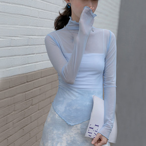 拓谷潮牌宽松防晒网纱打底衫女甜辣内搭透视长袖t恤女...