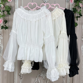 蕾丝网纱一字肩喇叭袖洛丽塔Lolita内搭洋装内衬...