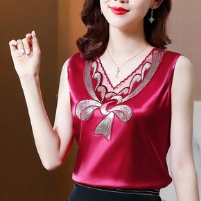 外贸吊带背心女式春秋宽松打底内搭大码缎面小衫无袖蕾...
