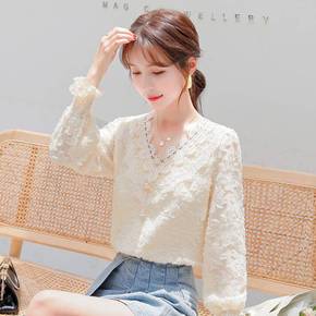 加绒蕾丝打底衫女装年新款时尚洋气内搭上衣欧货雪纺衬...