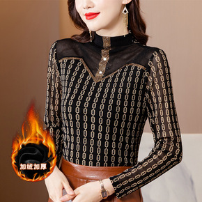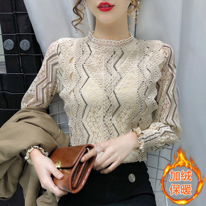 加绒衬衣蕾丝加绒打底衫女2021秋冬新款时尚洋气内...