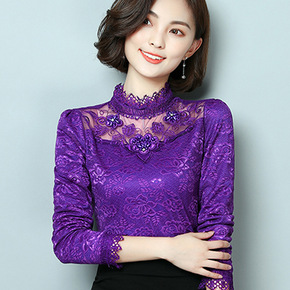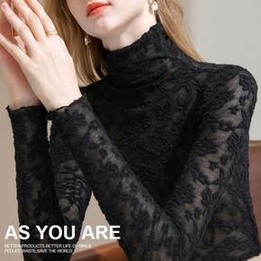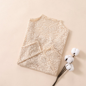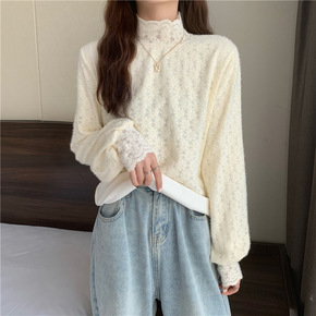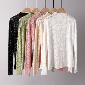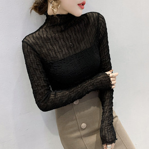 秋冬超仙网纱蕾丝衫女2021新款韩版洋气半高领内搭...