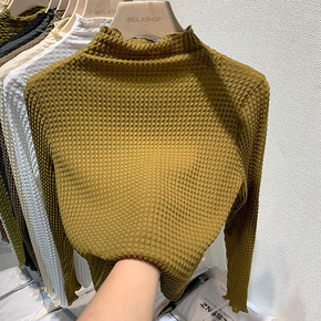 厂家直销半高领打底衫女修身型报纸通勤T恤女长袖紧身...
