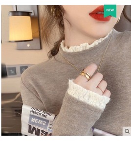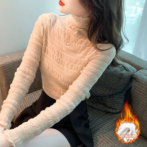 2021新款秋冬修身洋气加厚加绒时尚气质蕾丝打底衫...