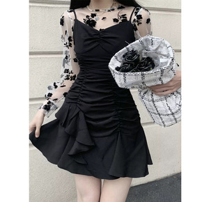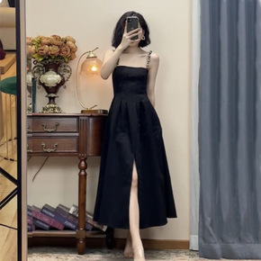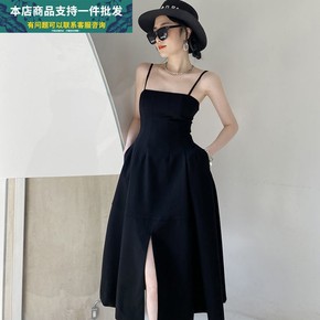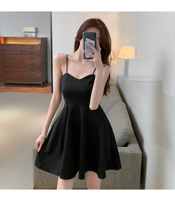 【带胸垫】黑色吊带短裙女秋季新款外穿内搭连衣裙性感...
