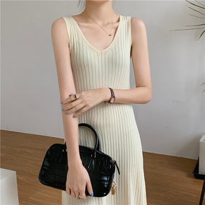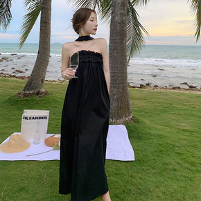 港风挂脖吊带连衣裙女夏季年新款中长裙气质收腰包臀打...