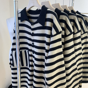 文立厂 oversize条纹针织polo领秋冬内搭...