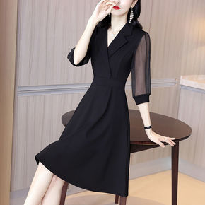 三醋酸缎面连衣裙女夏2022新款短袖领显瘦气质优雅...