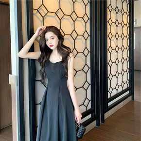 小黑裙2022夏季新款气质显瘦黑色无袖内搭连衣裙外...