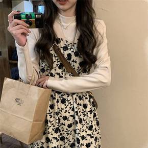 2022春夏新款日系中长裙女显瘦小个子软妹春装拼接...