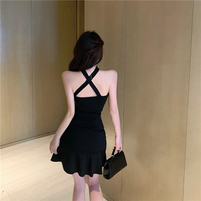 NN笙脽~性感后背交叉挂脖抹胸修身显瘦鱼尾小黑裙女...