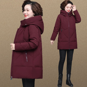 中老年女装妈妈冬季羽绒棉服中长款棉袄运动外套大码奶...