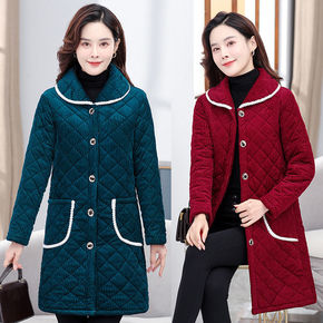 妈妈装灯芯绒中长款棉衣2021冬季新款加绒保暖大码...