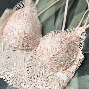 2133#棉感刺绣杯面褶皱蕾丝设计无钢圈法式薄杯舒...