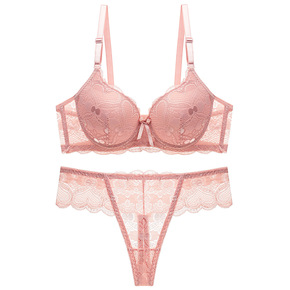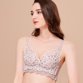 性感刺绣蕾丝无钢圈小胸中厚款聚拢调整型女内衣性感文...