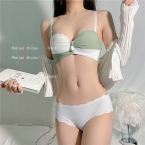 日系bra无肩带内衣套装少女 无钢圈收副乳抹胸式学...