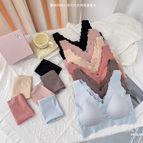欧阳同款娜娜深V小浪花内衣套装无痕无钢圈睡眠聚拢背...
