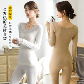 秋冬保暖内衣女套装37度恒温薄款磨毛修身无痕保暖内...
