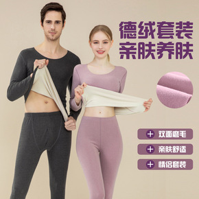 秋冬季保暖内衣套装男平板德绒包边锁温速热情侣塑身打...