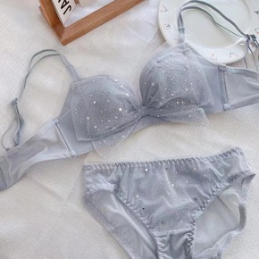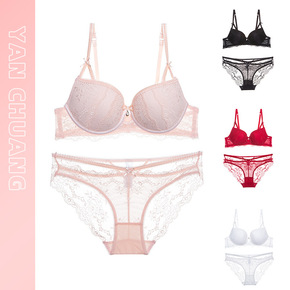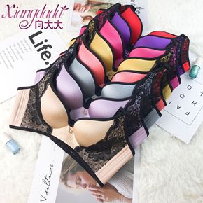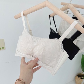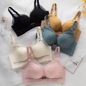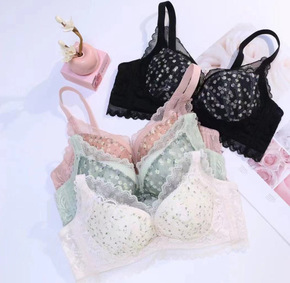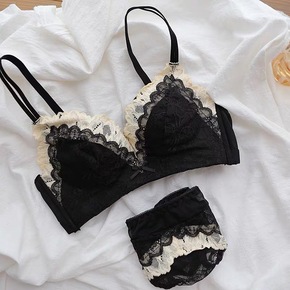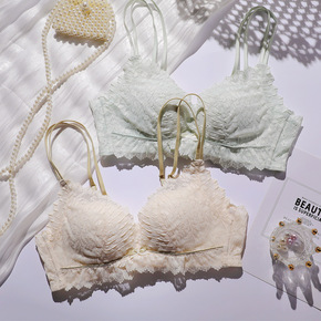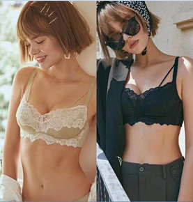 新款法式性感拼接蕾丝薄款内衣无钢圈小胸聚拢舒适不空...