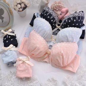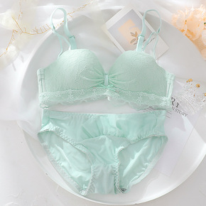 甜美褶皱小碎花蕾丝少女内衣套装柔软桃胶纤维无钢圈侧...