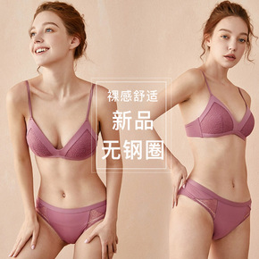 新款性感舒适无钢圈文胸法式蕾丝微聚拢胸罩性感薄款内...