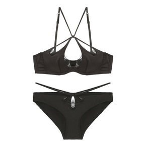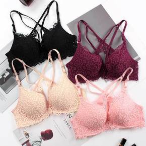 性感缎面交叉绑带美背内衣睫毛蕾丝薄款文胸软钢圈聚拢...