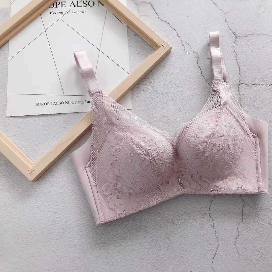 水晶杯文胸防凸点透气孔蕾丝薄款聚拢无钢圈大码文胸罩...